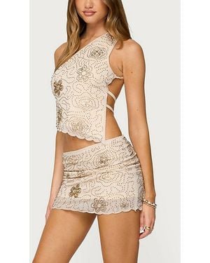 Sheer Sequin Bead Fringed Mini Skirt - White