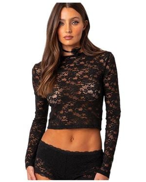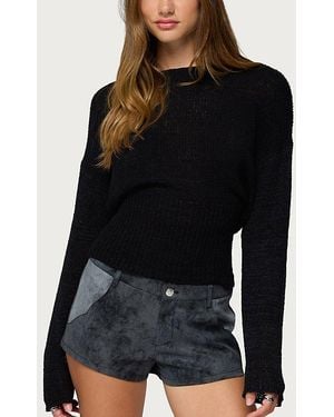 Binta Crop Long Sleeve Mock Neck Top - Blue