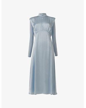 High-Neck Silk Midi Dress - Blue