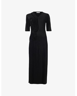 Quilted Embroidered Wool-Blend Midi Dress - Black