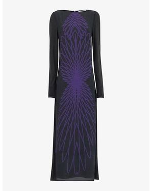 Abstract-Print Long-Sleeve Woven Midi Dress - Blue