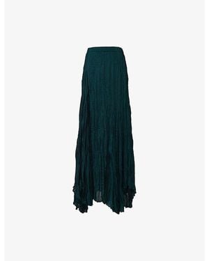 Asymmetric Plisse Woven Maxi Skirt - Blue