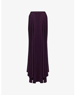 Gathered-Pleat Asymmetric-Hem Woven Midi Skirt - Purple