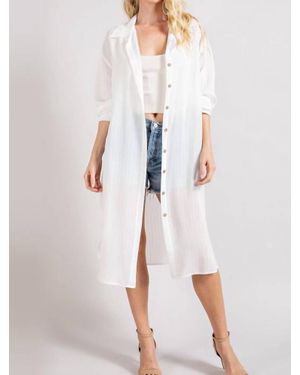 Button Down Long Jacket - White
