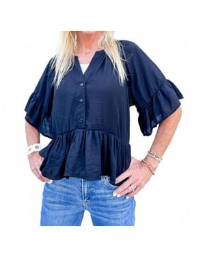 Coastal Muse Ruffle Short Sleeve Button Down Top - Blue