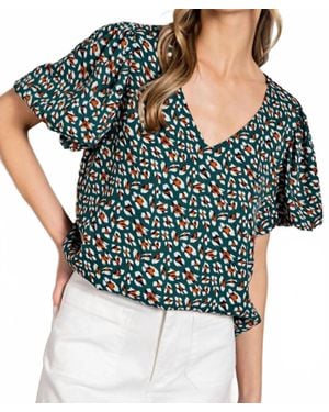 Bright Side Print Button Front Top - Green