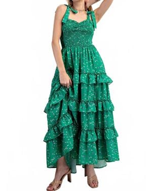 Floral Printed Tiered Ruffle Maxi Dress - Green