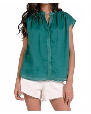 Tie Front Long Sleeve Linen Cover-Up - Green