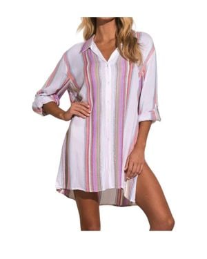 Printed Semisheer Cotton Button-Up Cover-Up Shirt - Pink