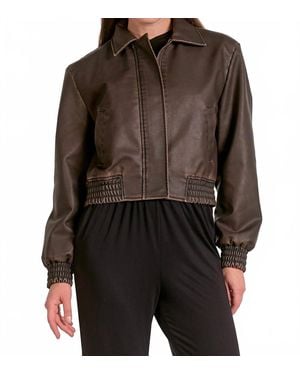 Genuine Leather Cropped Bomber Jacket - Brown