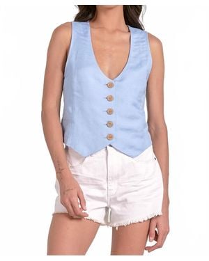 Linen Button Down Vest - Blue