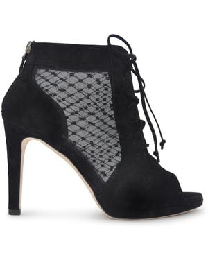 Bella Mesh Suede Leather High Heel Bootie - Black