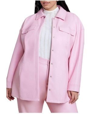 Plus Size Pocket Detail Faux Leather Jacket - Pink