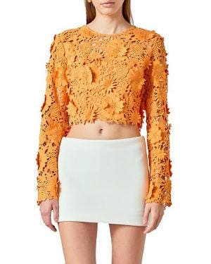 Floral Lace Long Sleeve Crop Top - Orange