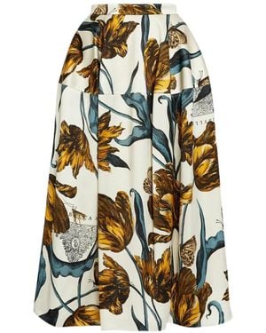 Floral-Print Midi Skirt - Natural