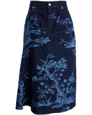 Printed Denim Midi Skirt - Blue