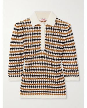 Comeback Open-Knit Cotton-Blend Polo Top - Yellow