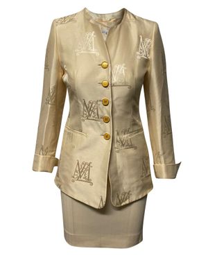 Escada was first established in Munich, Germany, in 1978 by Margaretha and Wolfgang Ley. The label initially made its name producing distinct ready-to-wear that used plenty of prints and colorful patterns as a signature aesthetic. Since its beginning, the label has grown to receive international acclaim as a luxury fashion group, offering ready-to-wear and accessories. Suit sets from Escada are distinct, with bold colors or metallic sheens added to make the combination stand out in the Escada way.
