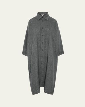 Heavyweight Delave Linen Wide A-Line Shirt Dress With Collar - Gray
