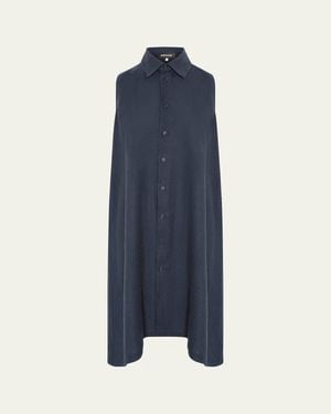 Side Pleated Sleeveless Midi Shirtdress With Collar - Blue