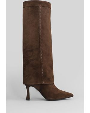 High Heels Boots In Brown Suede - Brown