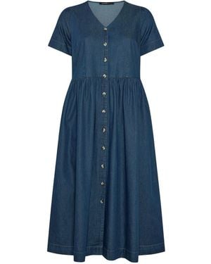Button Through Denim Dress - Blue