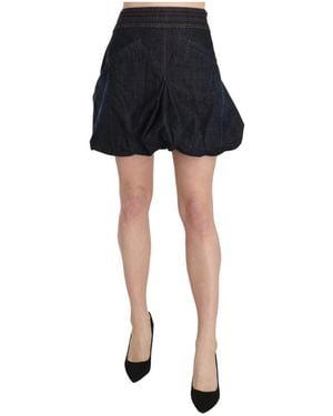 Denim Cotton Stretch A-line Mini Skirt Blue Pan70172 - Black