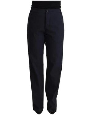 Black Viscose Acetate Blend Straight Leg High Waist Pants - Black