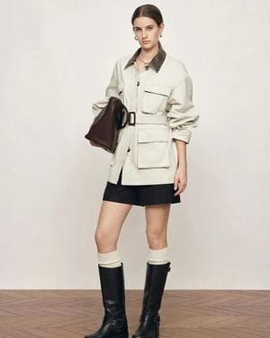 Fanny Striped Herringbone Button Suit Blazer - Natural
