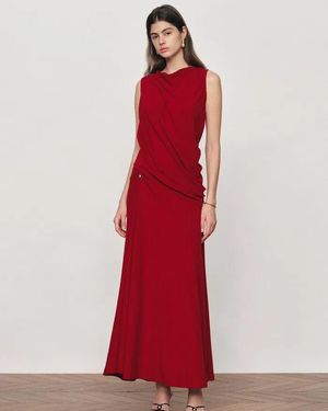 Florence Asymmetrical Draped Sleeveless Top And Skirt Set - Red