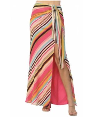 Multi Stripe Midi Skirt - Red