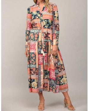 Patch Work Print Smocked Bodice Dress - Multicolor