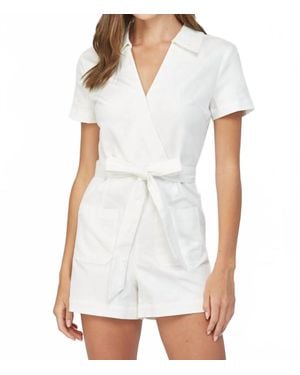Short Sleeve Wrap Romper With Collar - White