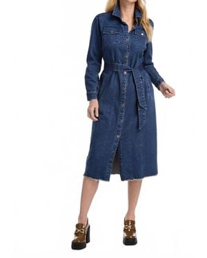 Denim Midi Dress With Belt - Blue