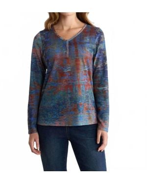 3/4 Sleeve Henley Top, Botany Patchwork - Blue