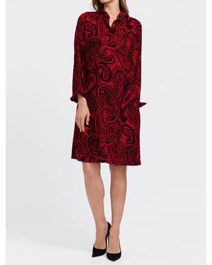Tammy Velvet Paisley Long Sleeve Dress - Red