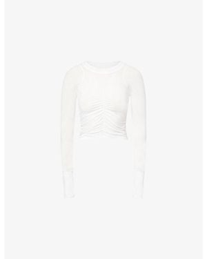 Tempo Ruched Long-Sleeve Stretch-Jersey T-Shirt - White