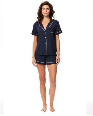 Notch Collar Short-sleeve Shirt And Shorts - Blue