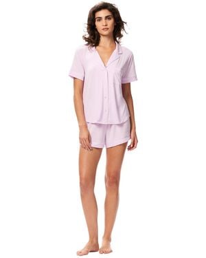 Notch Collar Short-sleeve Shirt And Shorts - Red
