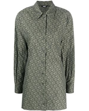 Logo-Print Shirt Dress - Green