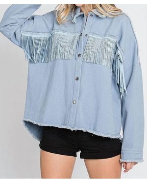 Rhinestone Fringe Detail Shirt Jacket - Blue