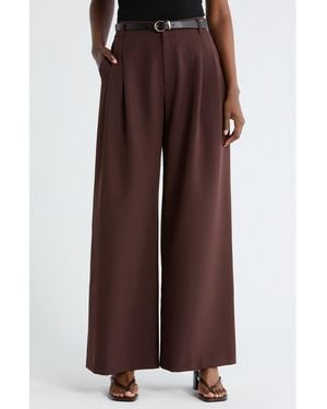 Double Pleat Wide Leg Pants - Brown