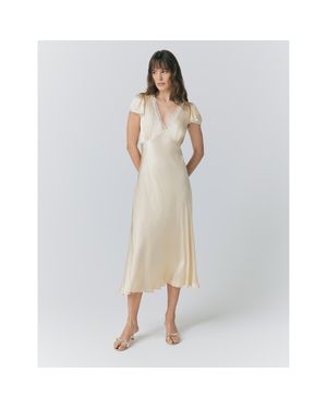 Lillie Lace Trim Satin Dress - Natural