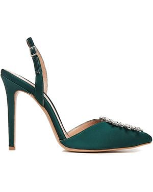 Alice Emerald Shoes With Crystal Brooch - Green