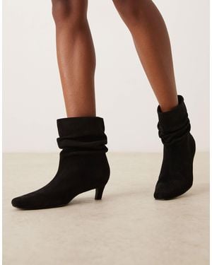 Kitten Heel Ruched Mid Ankle Boots - Black