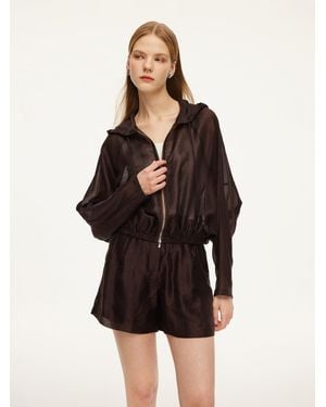 [Preview] Tencel Linen Blend Sheer Hooded Jacket - Black