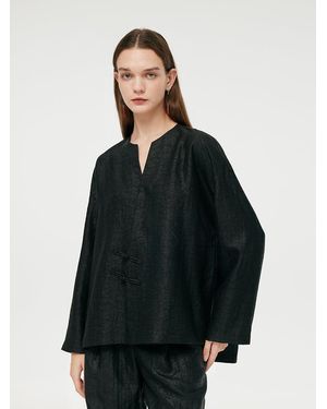 18 Momme Xiang Yun Silk Diagonal Placket Jacket - Black