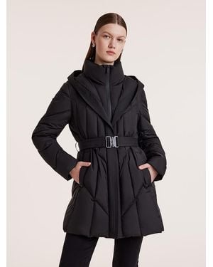 Triple Protection Fabric Hooded Gathered Waist Goose Down Garment - Black