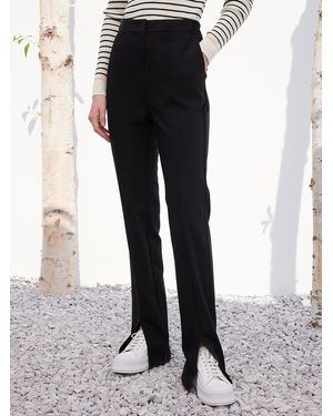 Full-Length Slim Pants With Slit - Black