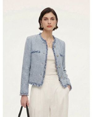 Tweed Fringe Trim Jacket - Blue